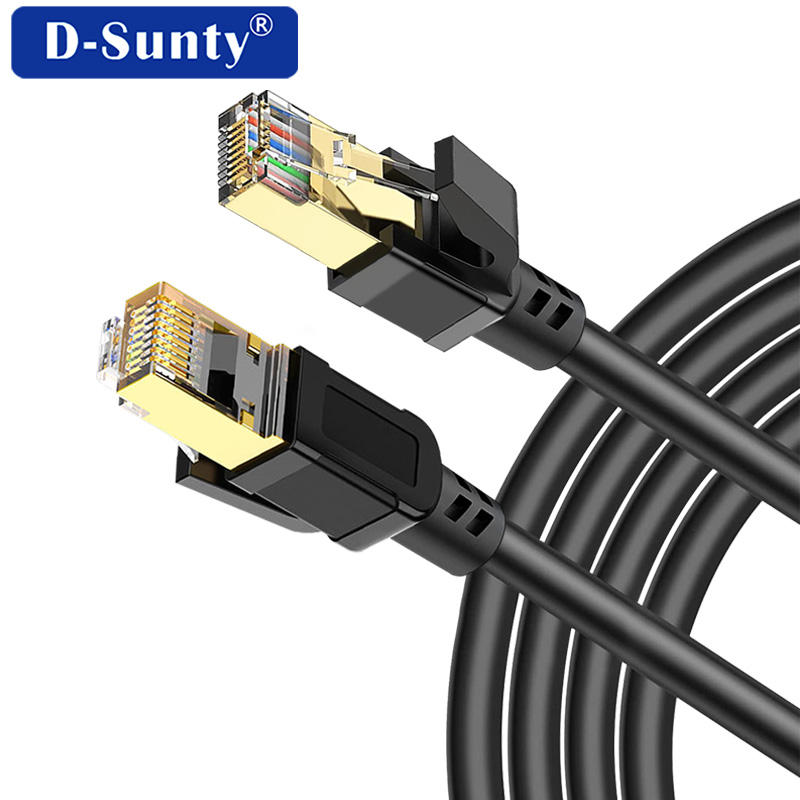 สายอีเธอร์เน็ต Cat8 คุณภาพสูง 2000Mhz 26AWG SFTP สำหรับภายในและภายนอกอาคาร RJ45 4 คู่ มาตรฐาน ROHS ปลอกหุ้ม PVC ความยาว 5 เมตร