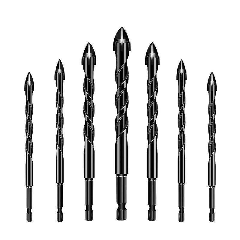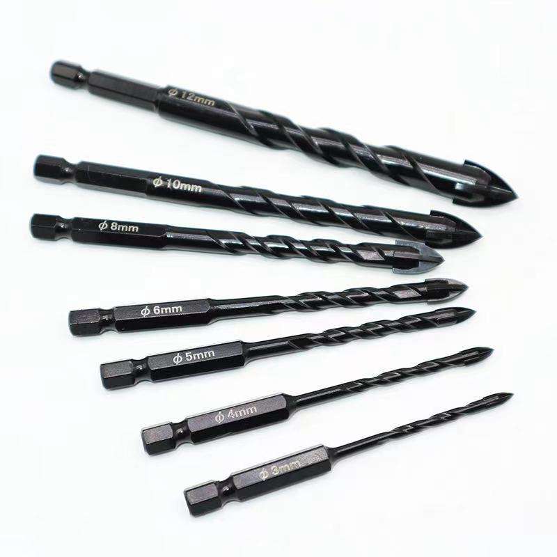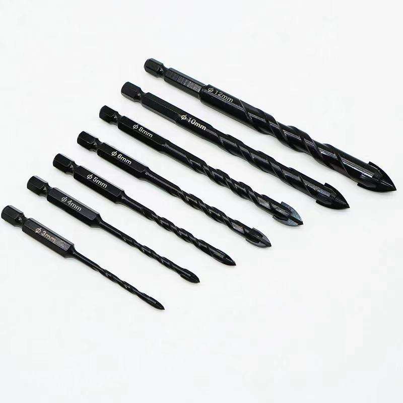 ชุดดอกสว่านคาร์ไบด์คุณภาพสูง ขนาด 3-12 มม. พร้อมก้านหกเหลี่ยมขนาด 6.35 มม. 7 ชิ้น หัวไขว้ สำหรับเจาะผนัง/กระเบื้อง/แก้ว แบบ 4 ร่อง