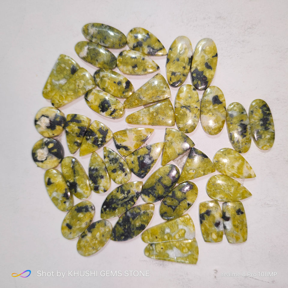 หินโอปอลทรงหลังเบี้ยสีเขียวธรรมชาติอัญมณีหลวมขนาด20-45มม. ปรับแต่งได้สำหรับเครื่องประดับแฮนด์เมด