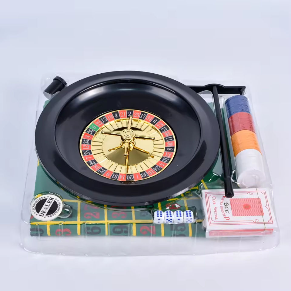 ชุดชิปโป๊กเกอร์สำหรับคาสิโน5 1วงล้อรูเล็ตแบบรัสเซียขนาด10นิ้วพร้อมถาดพลาสติกหมุนทนทาน