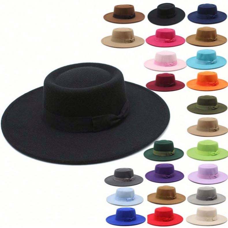 หมวกเฟโดราปีกกว้างทำจากผ้าขนสัตว์เทียมคุณภาพสูงราคาถูก สำหรับทุกเพศทุกวัย สามารถปรับแต่งลวดลายได้ เหมาะสำหรับธุรกิจ ตกปลา งานปาร์ตี้
