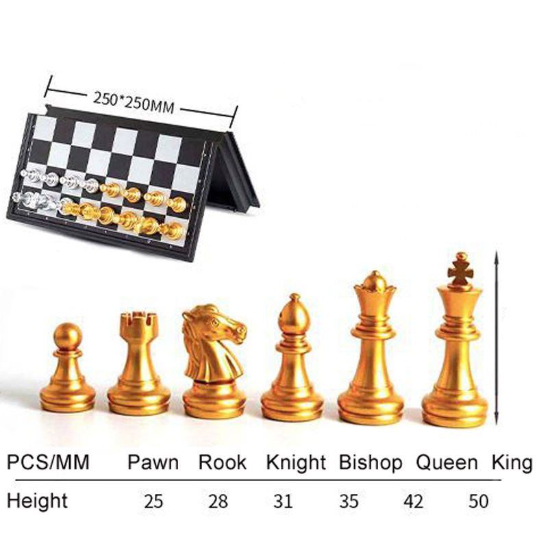 ชุดเกมหมากรุกคุณภาพสูง พร้อมกระดานหมากรุก 32 ตัว พร้อมกระดานหมากรุก ชุดหมากรุกแม่เหล็กสีทองเงิน