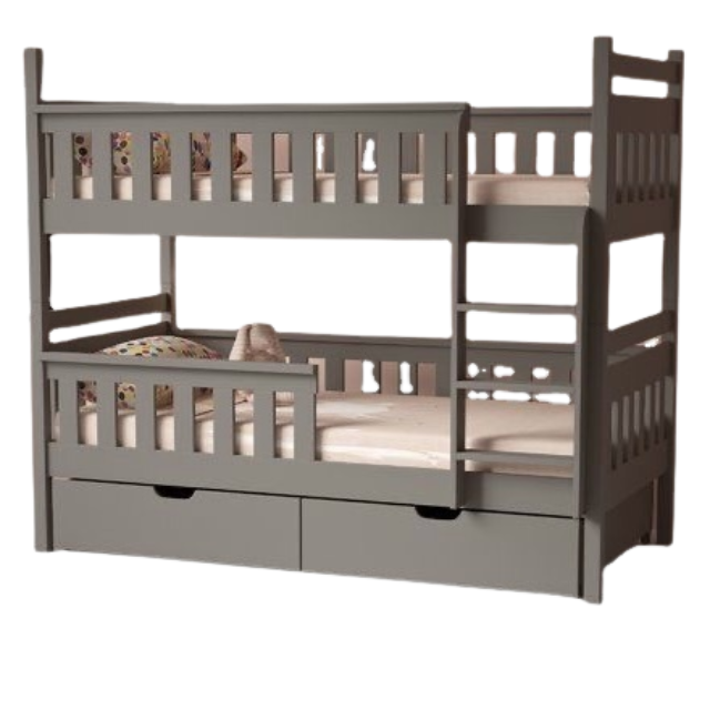 เตียงสองชั้นสำหรับเด็กพร้อมบันไดและลิ้นชักเตียงไม้สองชั้นพร้อมราวจับผลิตภัณฑ์