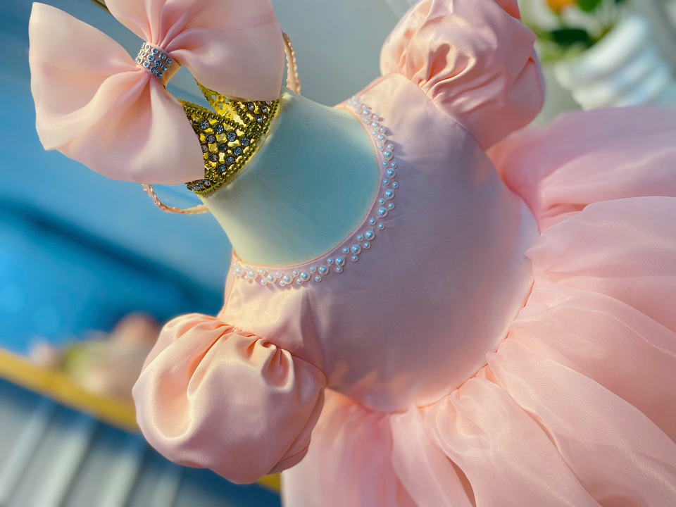 ชุดเดรสลำลองสีชมพูสำหรับเด็กผู้หญิงชุดเดรสแมกซี่ประดับด้วยลูกปัดดีไซน์แปลกๆเป็นมิตรกับสิ่งแวดล้อม