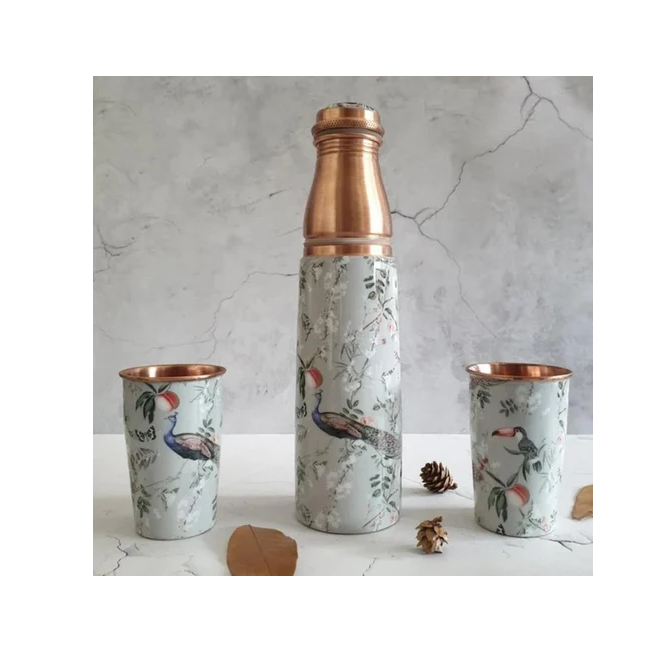 ขวดน้ำสำหรับเด็กเครื่องดื่มทองแดงทรงกลมพิมพ์ลายเคลือบผิวสำหรับเป็นของขวัญดื่มแบบคลาสสิก