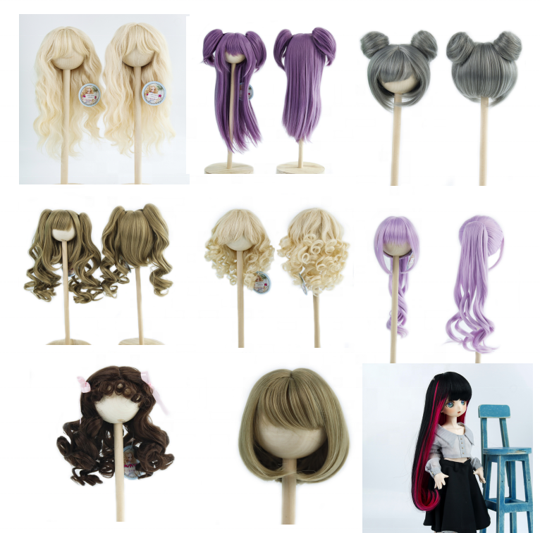 วิกผม BJD คุณภาพสูงจากโรงงานจีน ราคาถูก สีม่วงเทา ผมยาวหยิก