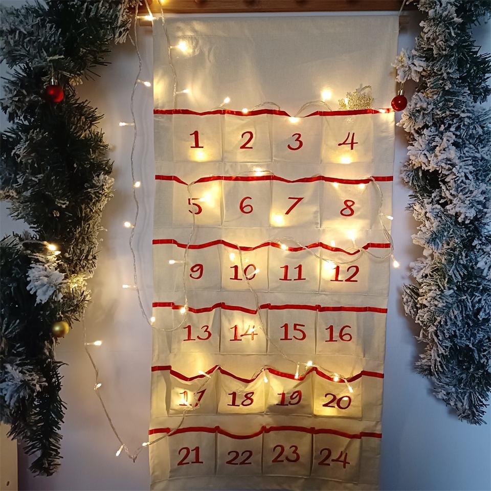ปฏิทินนับถอยหลังสำหรับวันคริสต์มาสมี24กระเป๋าสำหรับตกแต่งแบบแขวนปักตัวเลขทำจากผ้าฝ้ายปฏิทินจุติ