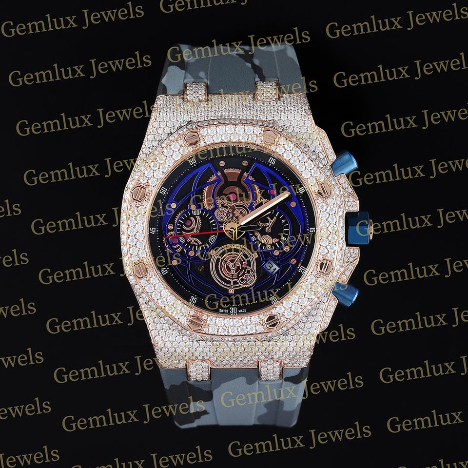 นาฬิกาข้อมือเพชรสำหรับผู้ชายโครโนกราฟลายพราง