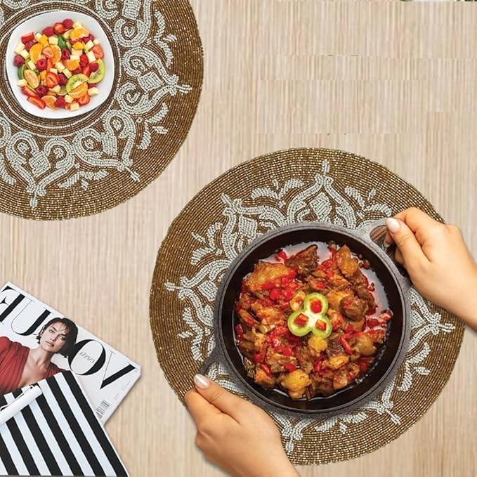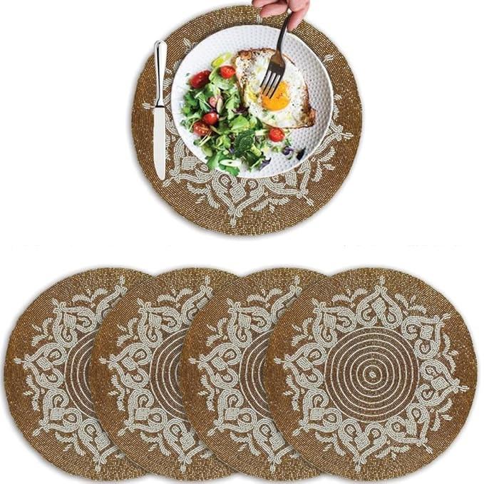 ลูกปัดแก้วทรงกลมสีทองสำหรับตกแต่งเสื่อดีไซน์ทำมืออินเดีย