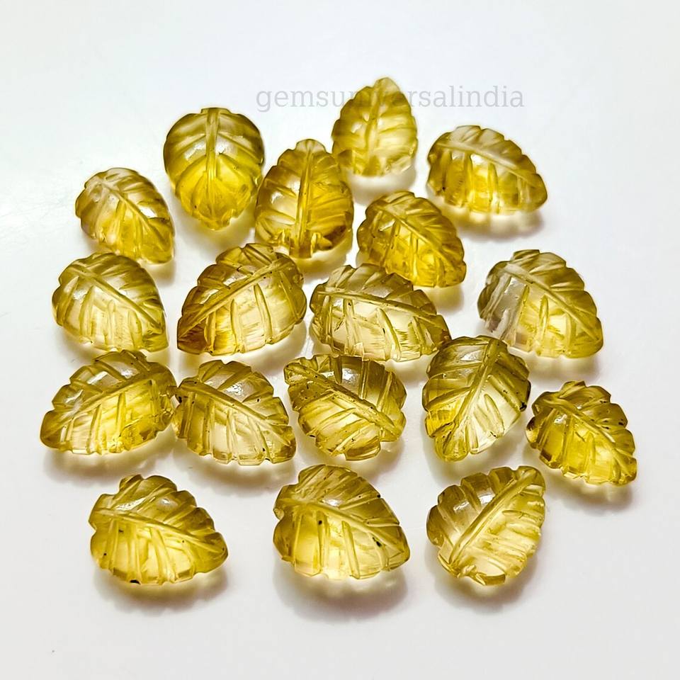 พลอยรูปใบไม้สีเหลืองมะนาวธรรมชาติลูกปัดใบเรียบสลักด้วยมือลูกปัดแกะสลักสำหรับทำเครื่องประดับขนาด10มม.
