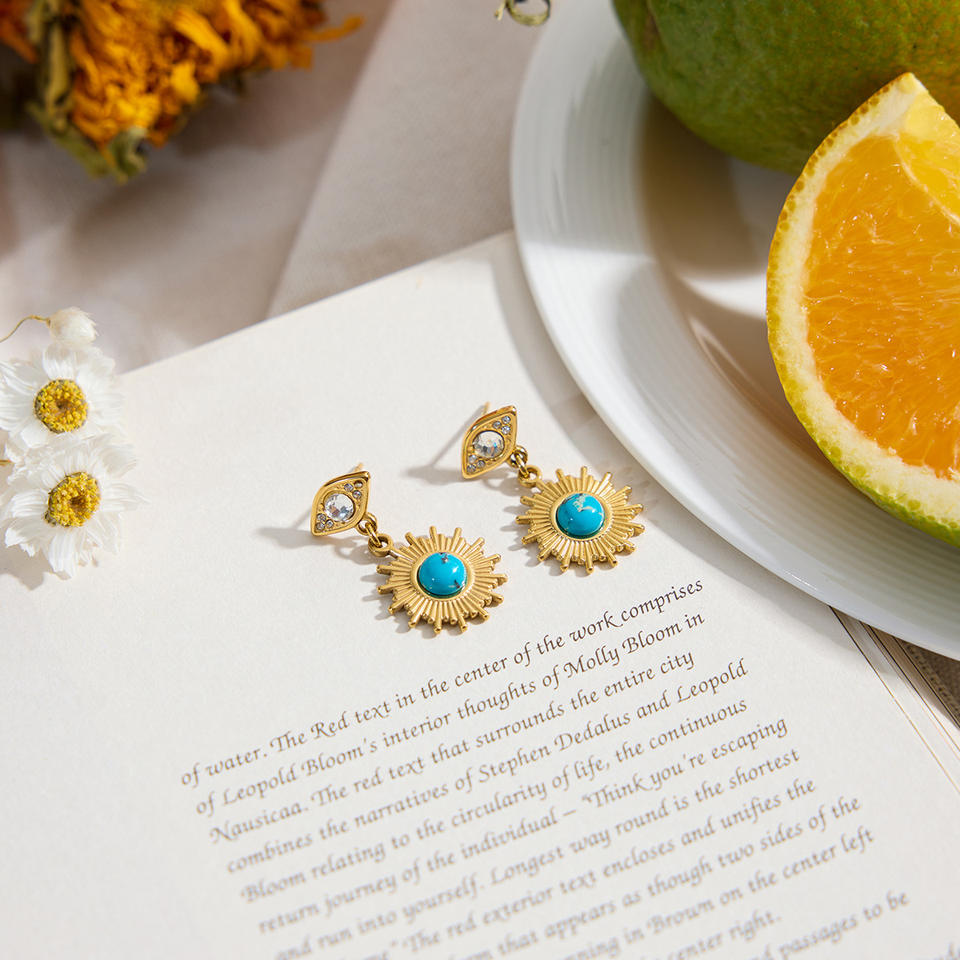 ต่างหูระย้าเพชรสีฟ้าเทอร์ควอยส์สำหรับผู้หญิงสีทอง18K คลาสสิกคุณภาพสูง