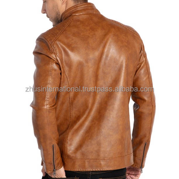 เสื้อแจ็กเก็ตหนังของผู้ชาย,แจ็กเก็ตหนังคอตั้งสำหรับขี่มอเตอร์ไซค์สวมใส่สบายแบบคลาสสิก