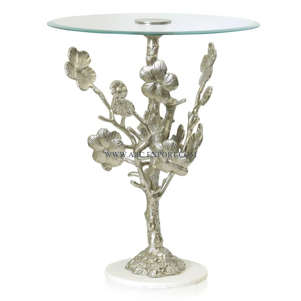 โต๊ะกาแฟหินอ่อนสีขาวดีไซน์คลาสสิกโต๊ะข้างขนาดกลางขัดเงาสีทองดีไซน์คลาสสิก