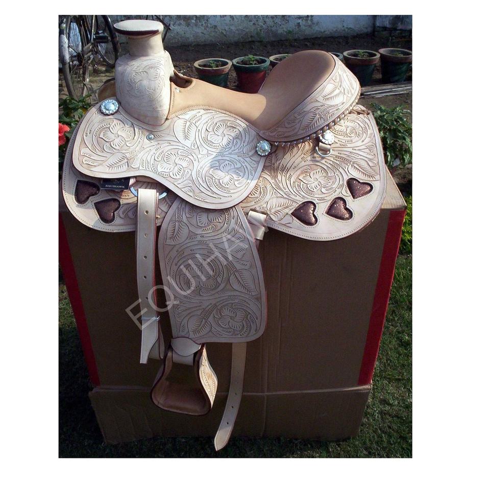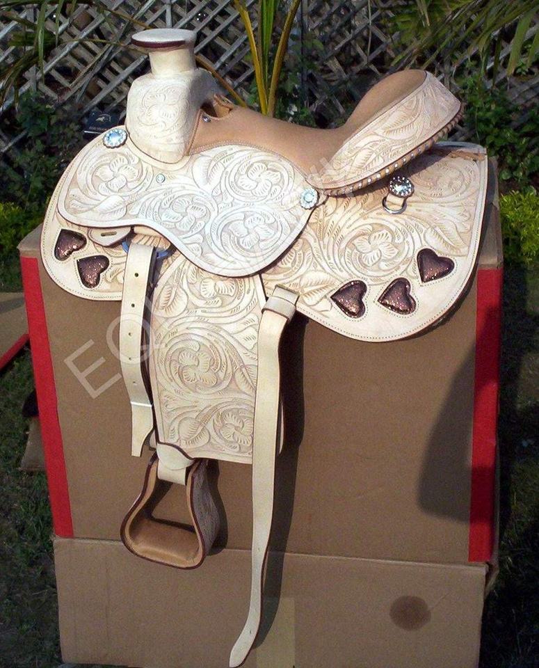 อานม้าหนังแท้สไตล์ตะวันตกคุณภาพสูง ลายแกะสลักรูปหัวใจ ประดับด้วยคริสตัล ดีไซน์สวยงาม โครงไม้คุณภาพหนัก แข็งแรง ทนทาน