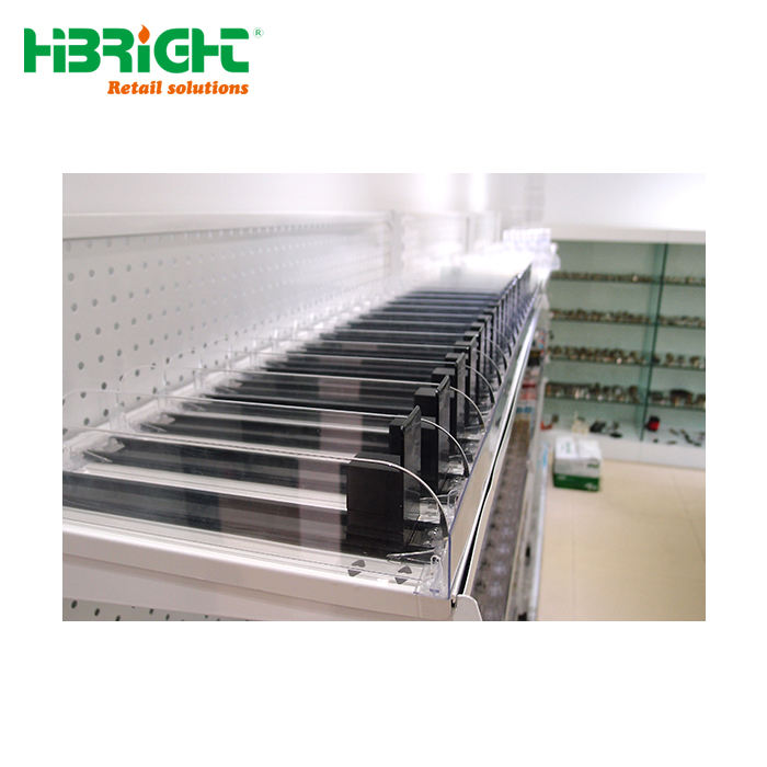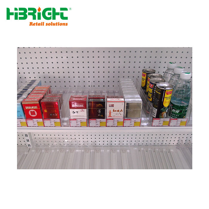 ที่มีคุณภาพสูงที่ชัดเจนอะคริลิยาสูบชั้นวางขวดเครื่องดื่มสามารถพลาสติกแบ่งชั้นวางและฤดูใบไม้ผลิดันระบบ