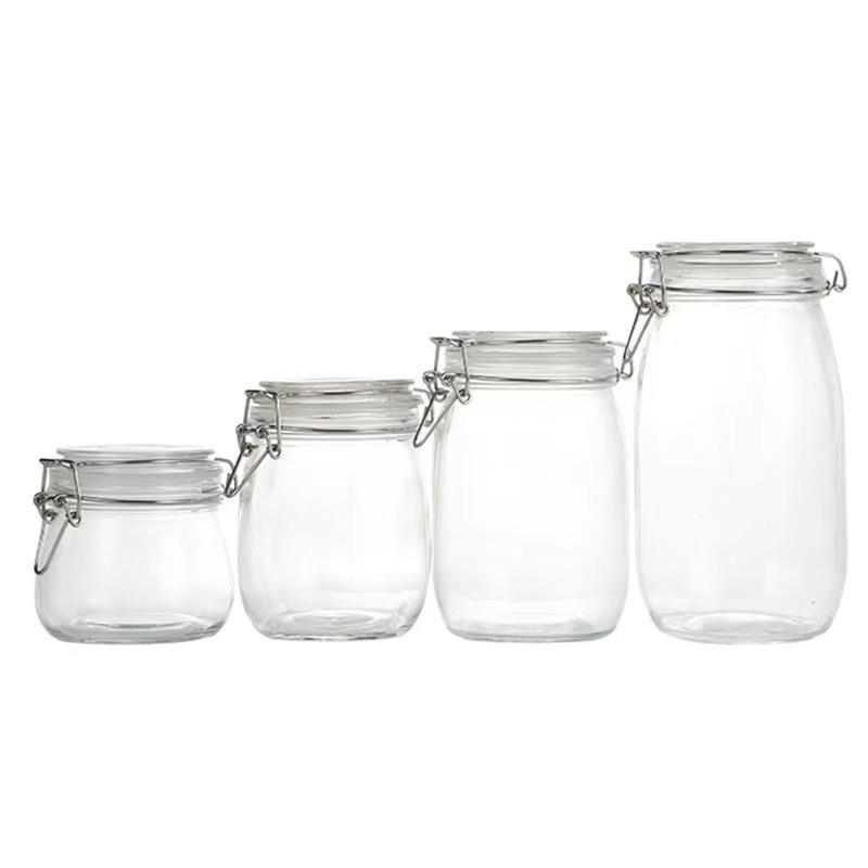 ขวดโหลแก้วใสขนาด500มล./750มล./1000มล./1500มล. พร้อมฝาแก้วดีไซน์ทันสมัยปลอดภัยสำหรับอาหาร