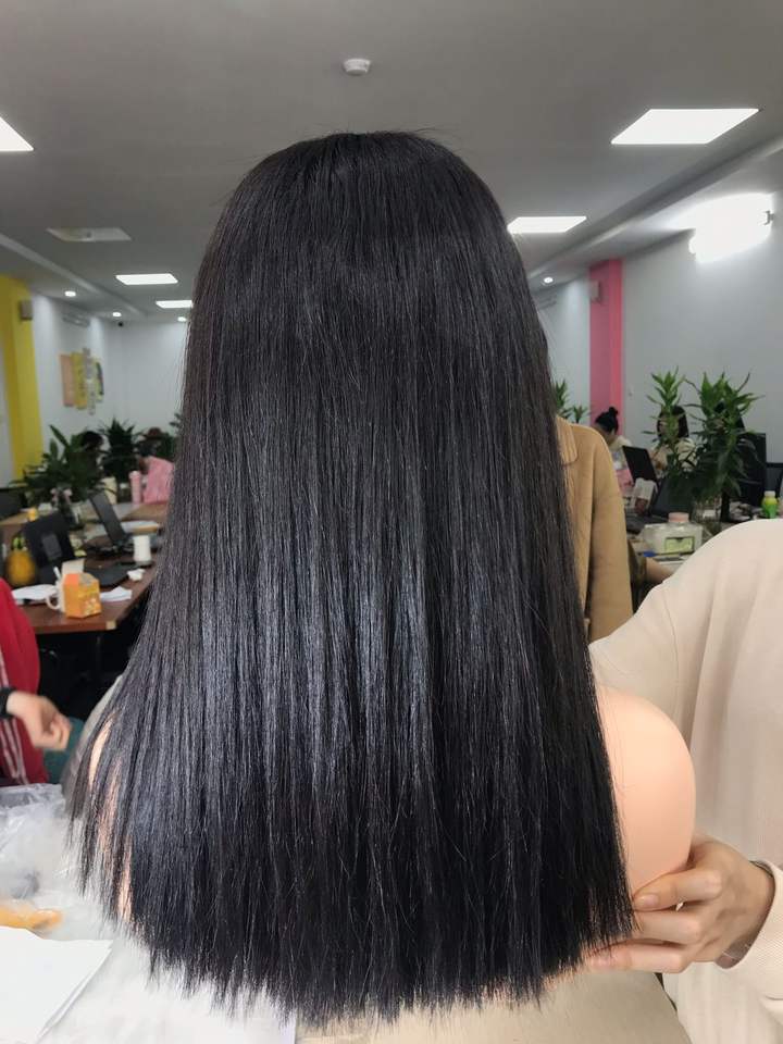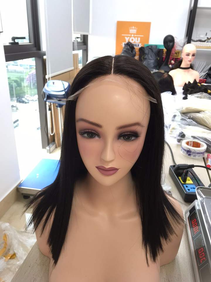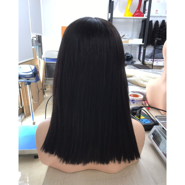 วิกผมต่อบ๊อบปิดด้านหน้าลูกไม้ตรงธรรมชาติสีดำใส่สบายทำจาก100% เวียดนาม