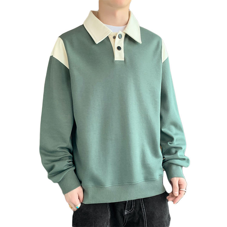 เสื้อสเวตเตอร์คอกลมแบบสวมหัวมีฮู้ดโอเวอร์ไซส์ลำลองสำหรับผู้ชายแนวสตรีท