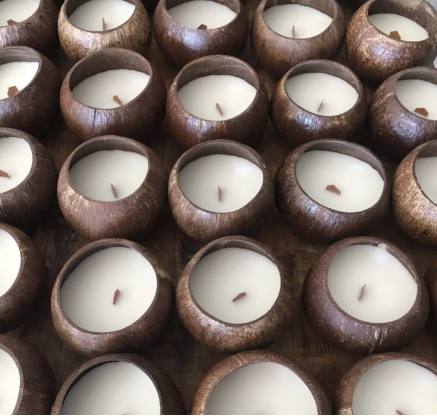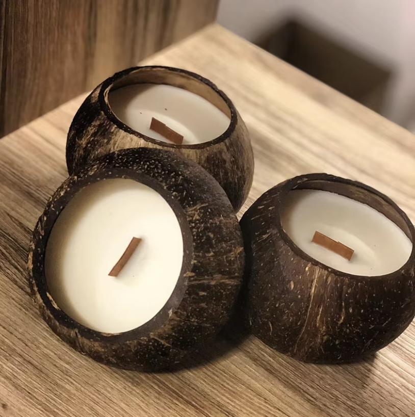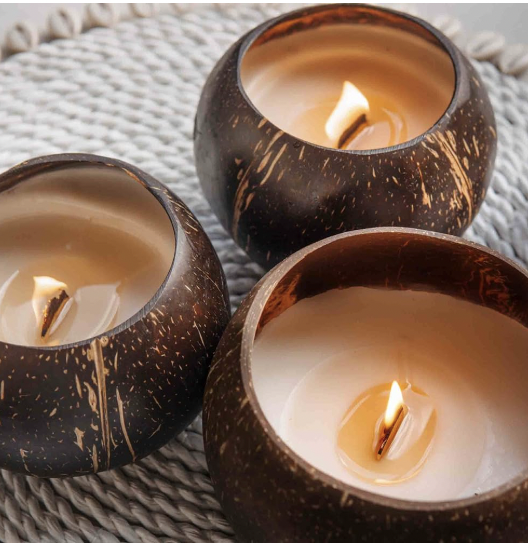 วัสดุ:กะลามะพร้าวขี้ผึ้งถั่วเหลือง