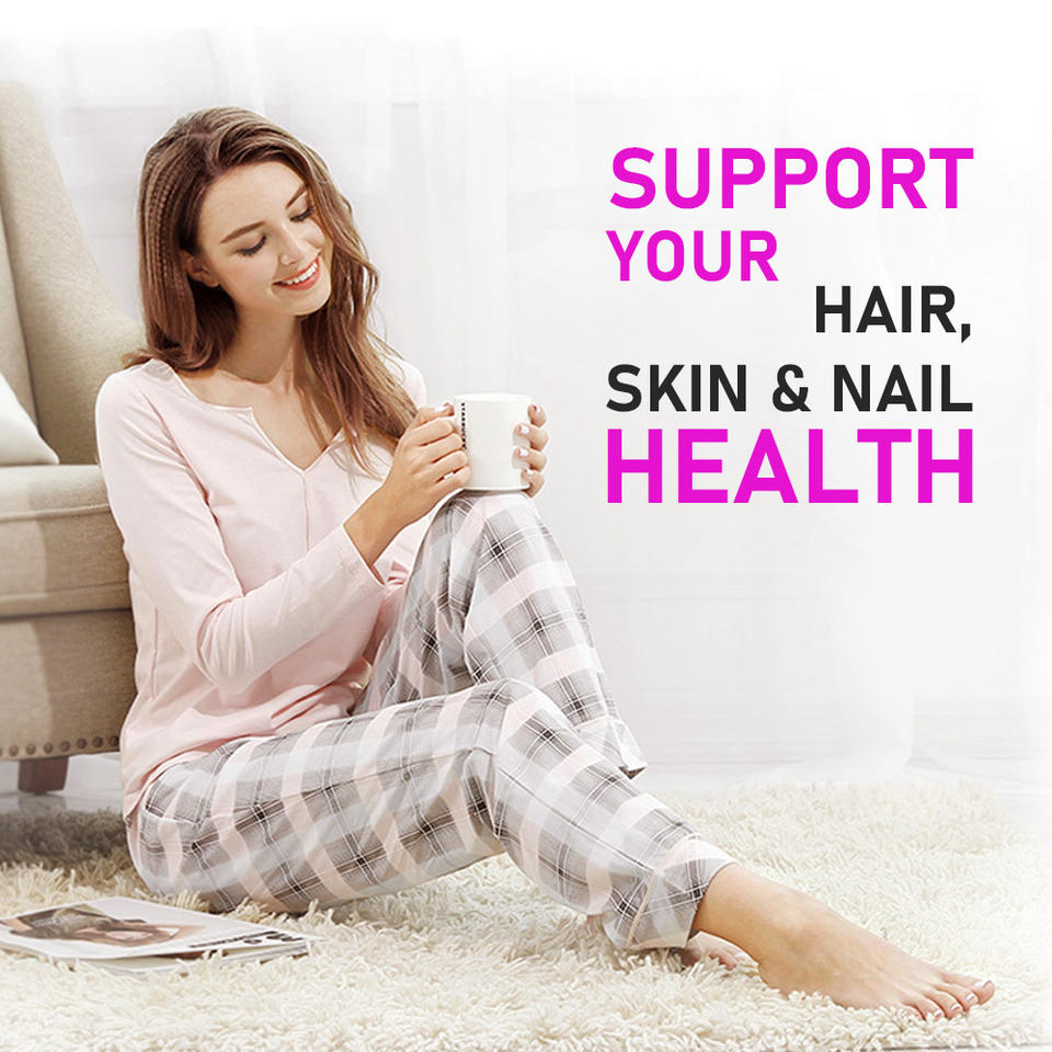 ประโยชน์ของผลิตภัณฑ์:เจริญเติบโตของเส้นผม, การสนับสนุนภูมิคุ้มกัน, ผิวกระจ่างใส, การเจริญเติบโตของเล็บ, รองรับกระดูกและข้อต่อ