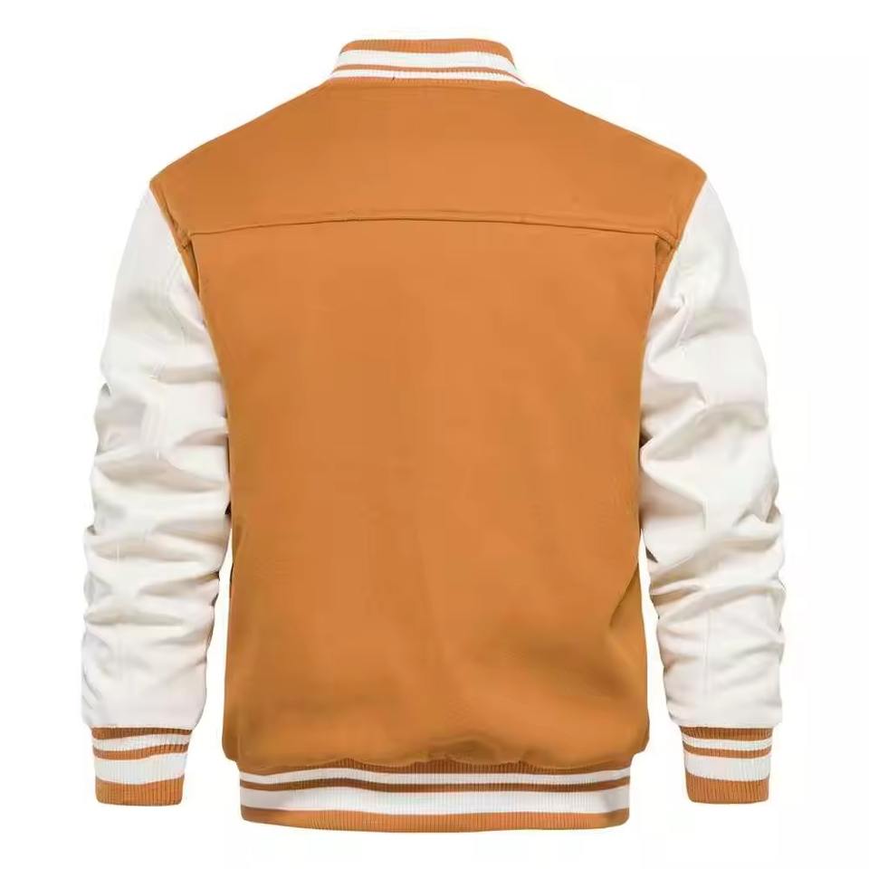 เสื้อแจ็คเก็ตเบสบอลคุณภาพสูงสำหรับผู้ชาย สไตล์ฮิปฮอป แขนยาว มีกระเป๋าหน้า คอตั้ง แบบวาร์ซิตี้ ผลิตในปากีสถาน