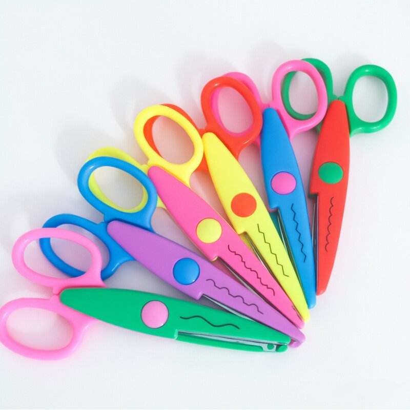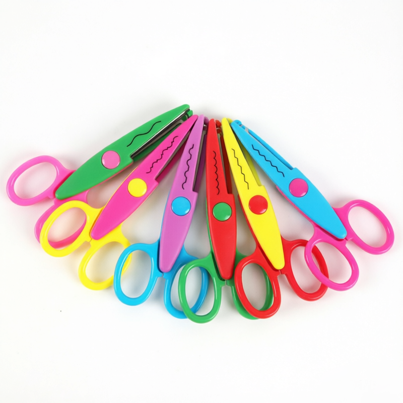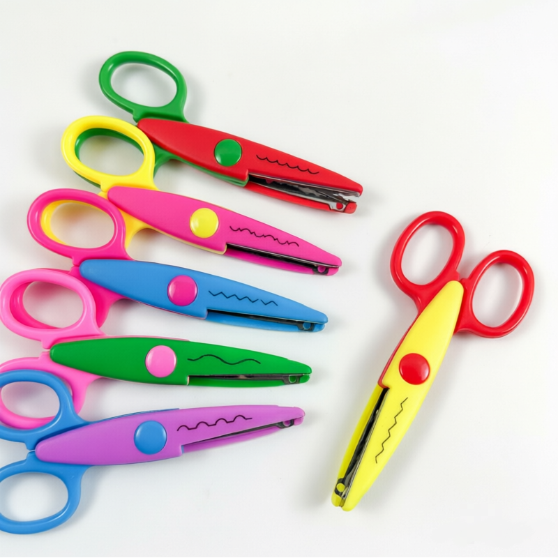 กรรไกรตกแต่งขอบพลาสติกสีสันสดใสคุณภาพสูง ชุดกรรไกรงานฝีมือที่ปลอดภัยและทนทาน สำหรับงาน DIY สมุดภาพ การ์ด และงาน Scrapbooking