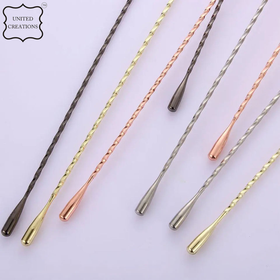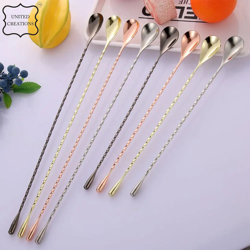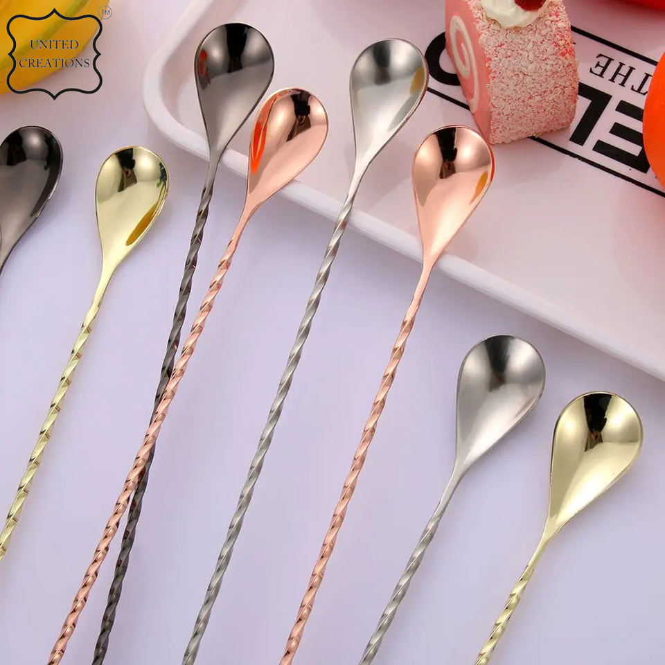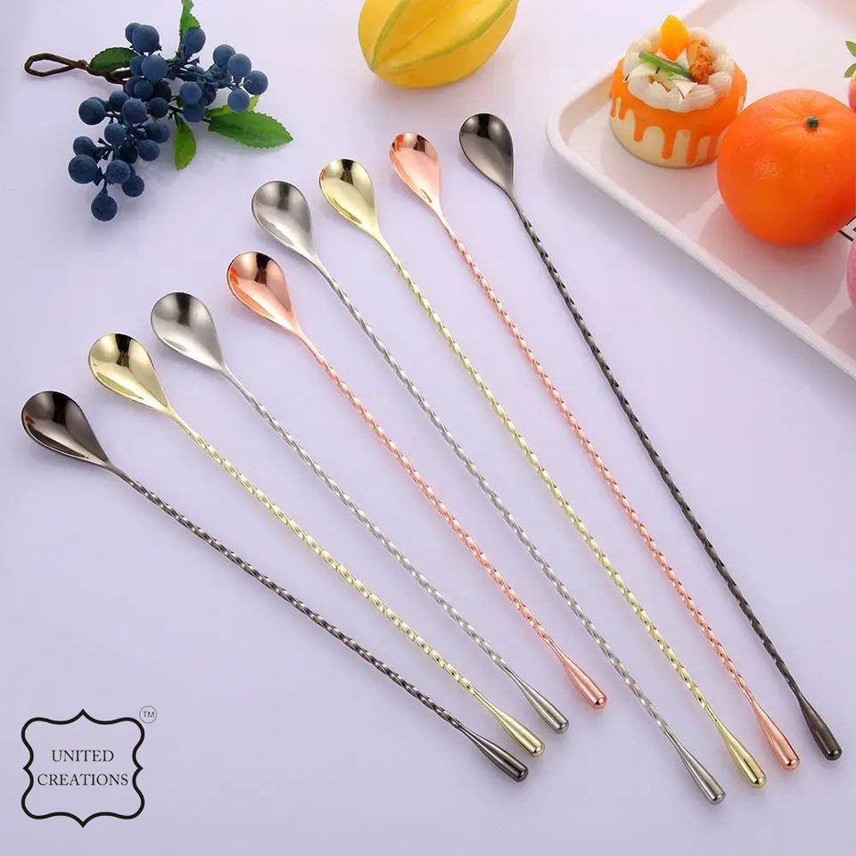 ช้อนคนค็อกเทลทำจากสเตนเลสด้ามยาวทำจากวัสดุโลหะสีสันสดใส