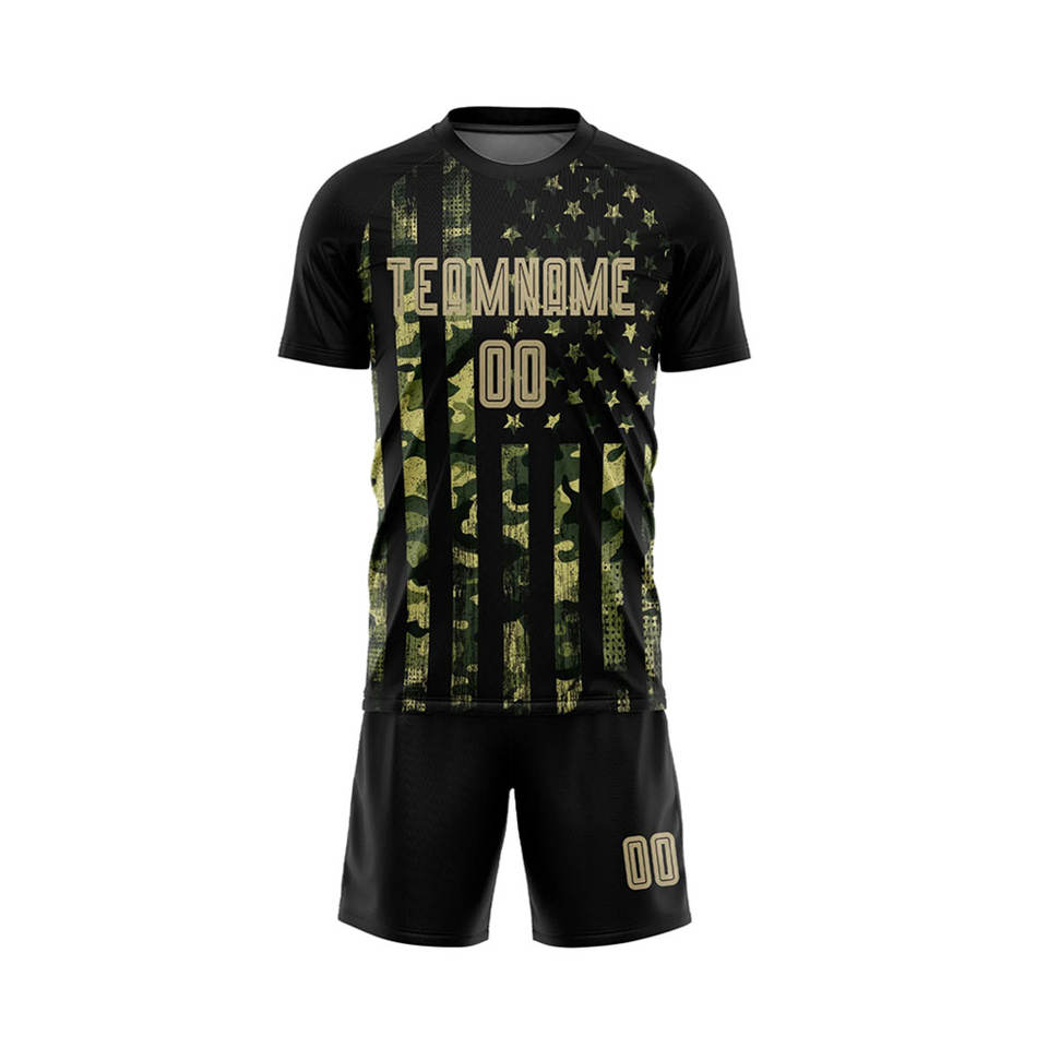ชุดฟุตบอลสีน้ำเงินและสีเหลืองคุณภาพสูง สวมใส่สบาย พร้อมโลโก้และดีไซน์แบบกำหนดเอง ขนาด 100% โพลีเอสเตอร์ สำหรับผู้ใหญ่ทุกเพศ