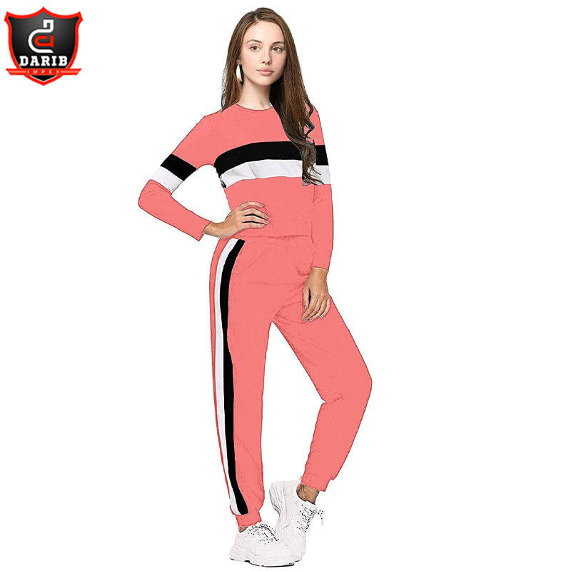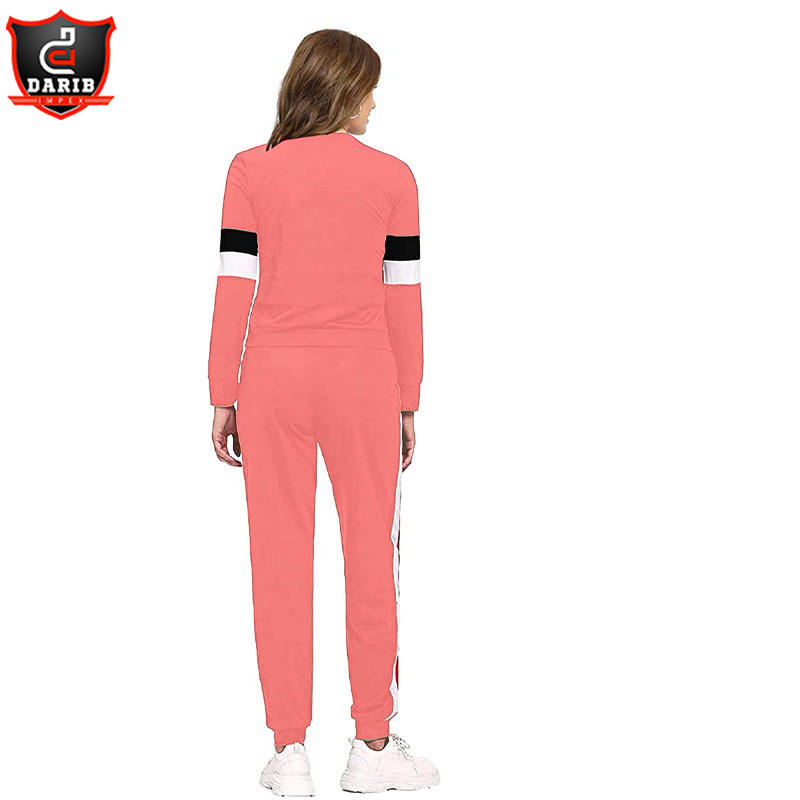 ชุดวิ่งออกกำลังกายสำหรับผู้หญิง,ชุดกีฬาสีชมพูและสีขาวโพลีเอสเตอร์100% สวมใส่สบาย