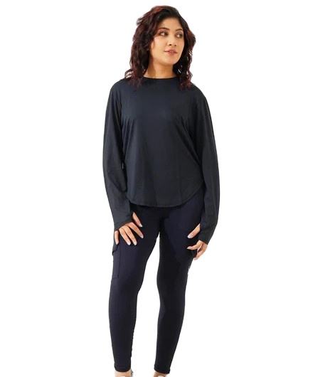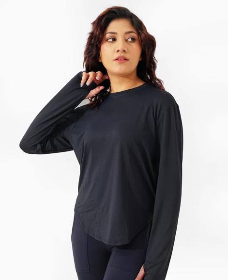 เสื้อยืดแขนยาวสำหรับผู้หญิงทรงหลวมลำลองผ้าคอตตอนทรงหลวมสะพายไหล่ใส่สบาย