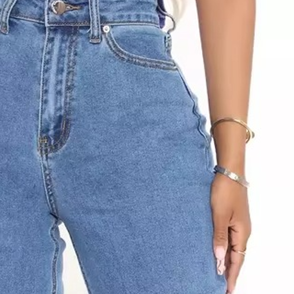กางเกงยีนส์ผู้หญิงทรงสลิมฟิต คุณภาพสูง สวมใส่สบาย ตกแต่งด้วยโลโก้ เอวกลาง ดีไซน์เรียบง่าย ทันสมัย เหมาะสำหรับฤดูร้อน
