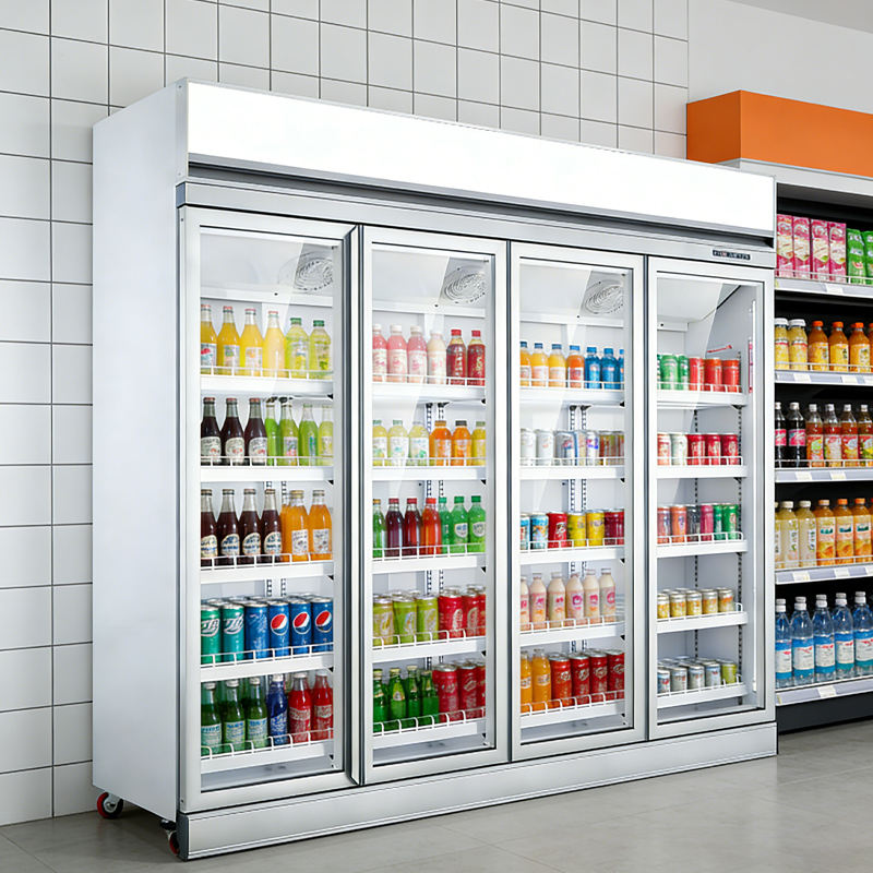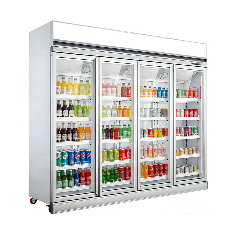 ตู้แช่เครื่องดื่มแบบตั้งตรง 4 ประตูกระจก คุณภาพสูง สำหรับใช้ในเชิงพาณิชย์ พร้อมไฟ LED ควบคุมอุณหภูมิเดียว ความจุขนาดใหญ่ เหมาะสำหรับซูเปอร์มาร์เก็ต