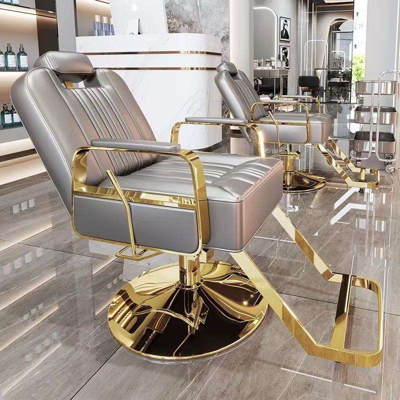 เก้าอี้ตัดผมหนังสังเคราะห์สีเทาสีดำด้านสำหรับร้านเสริมสวย