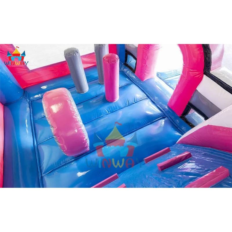 บ้านลมเป่าลมคุณภาพสูงสำหรับเด็ก สีฟ้า พร้อมสไลเดอร์ สีขาว