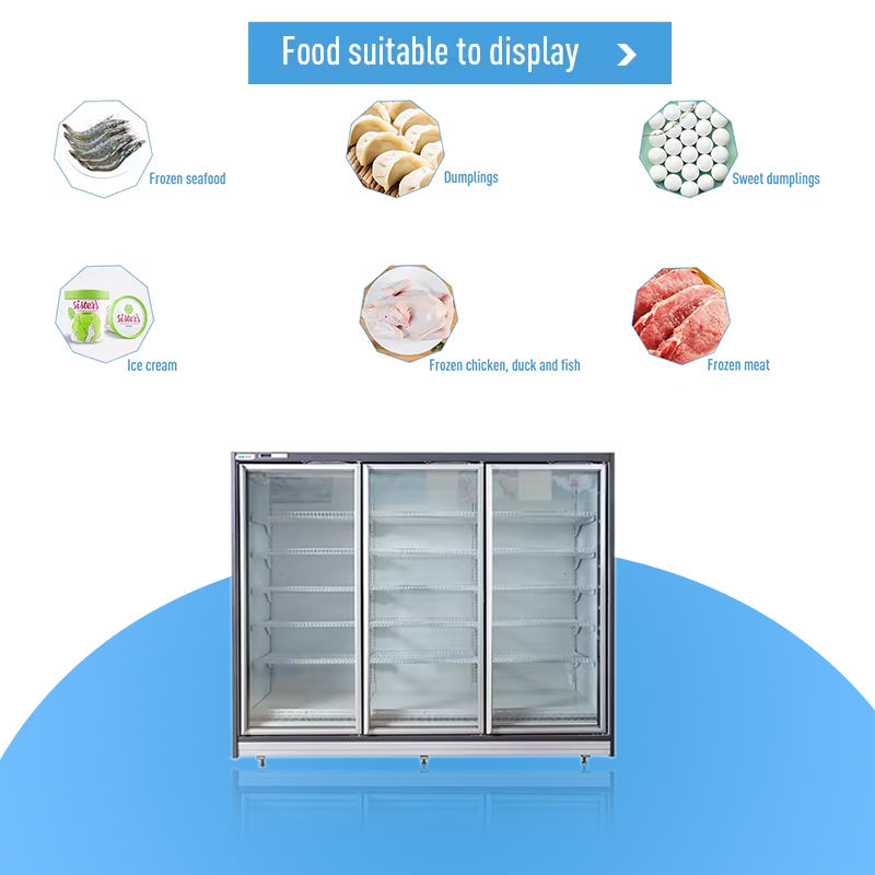 ตู้แช่แข็งแบบตั้งตรงคุณภาพสูง ระบบทำความเย็นด้วยอากาศ ดีไซน์ 3 ประตู ความจุขนาดใหญ่ สำหรับใช้ในซูเปอร์มาร์เก็ต