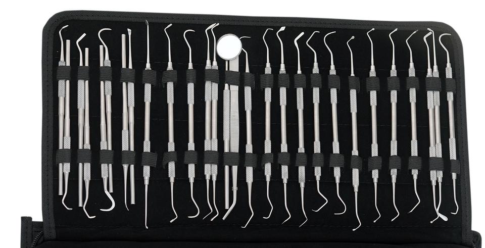 ชุดเครื่องมือตรวจฟันแบบครบวงจรแหล่งพลังงานแบบแมนนวลทำจากเหล็ก62ชิ้น