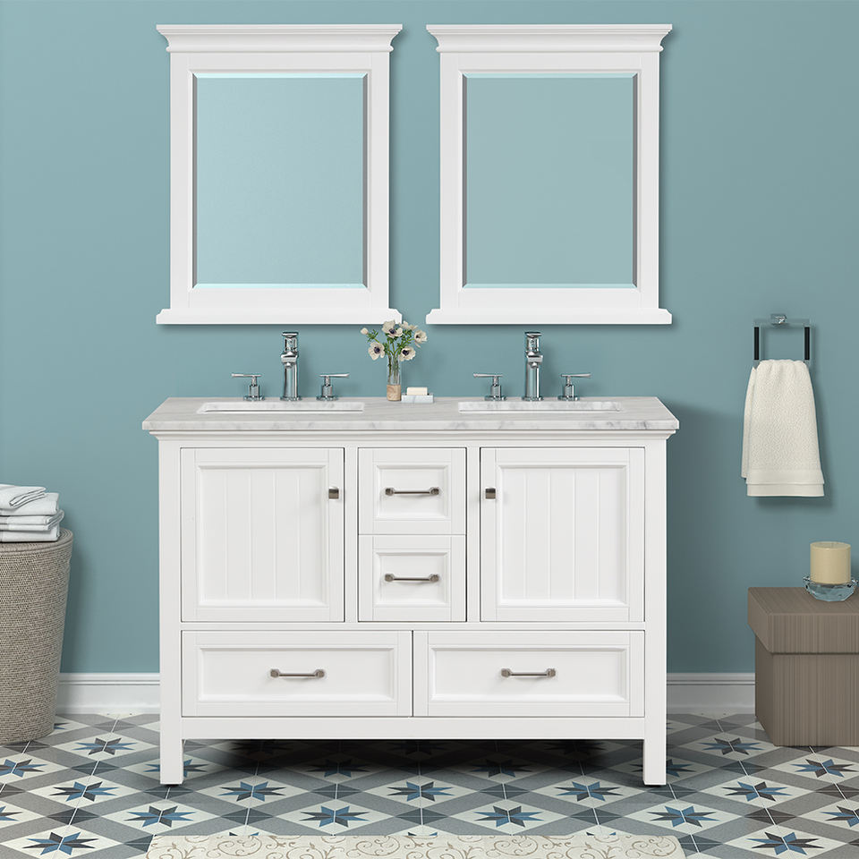 ตู้ห้องน้ำไม้เนื้อแข็งคุณภาพสูง ดีไซน์ร่วมสมัย พร้อมระบบปิดแบบนุ่มนวล และอ่างเซรามิก จากเวียดนาม