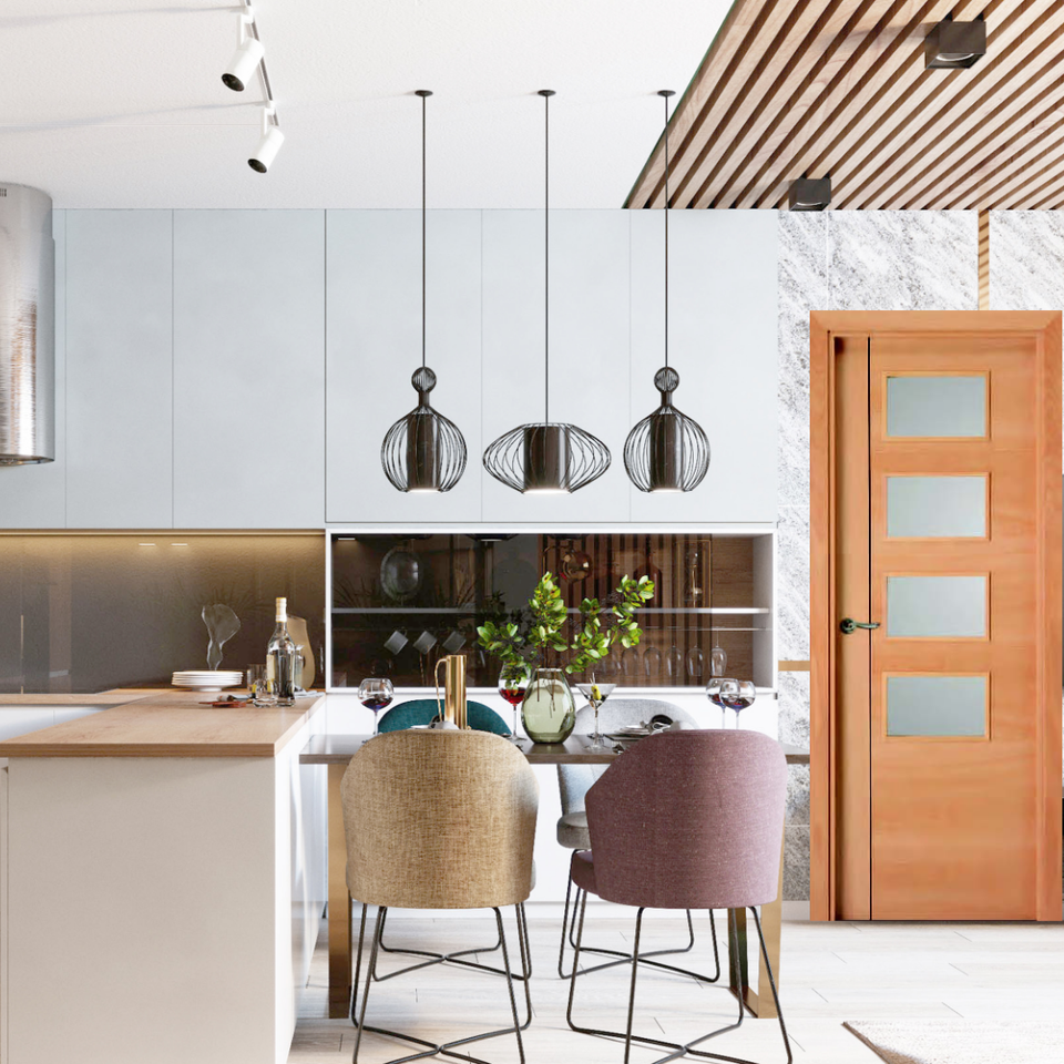 ไม้บีชนึ่งประตูรักษาความปลอดภัยภายในแบบสเปนร่วมสมัยพร้อมการตกแต่งพื้นผิวสำเร็จรูป