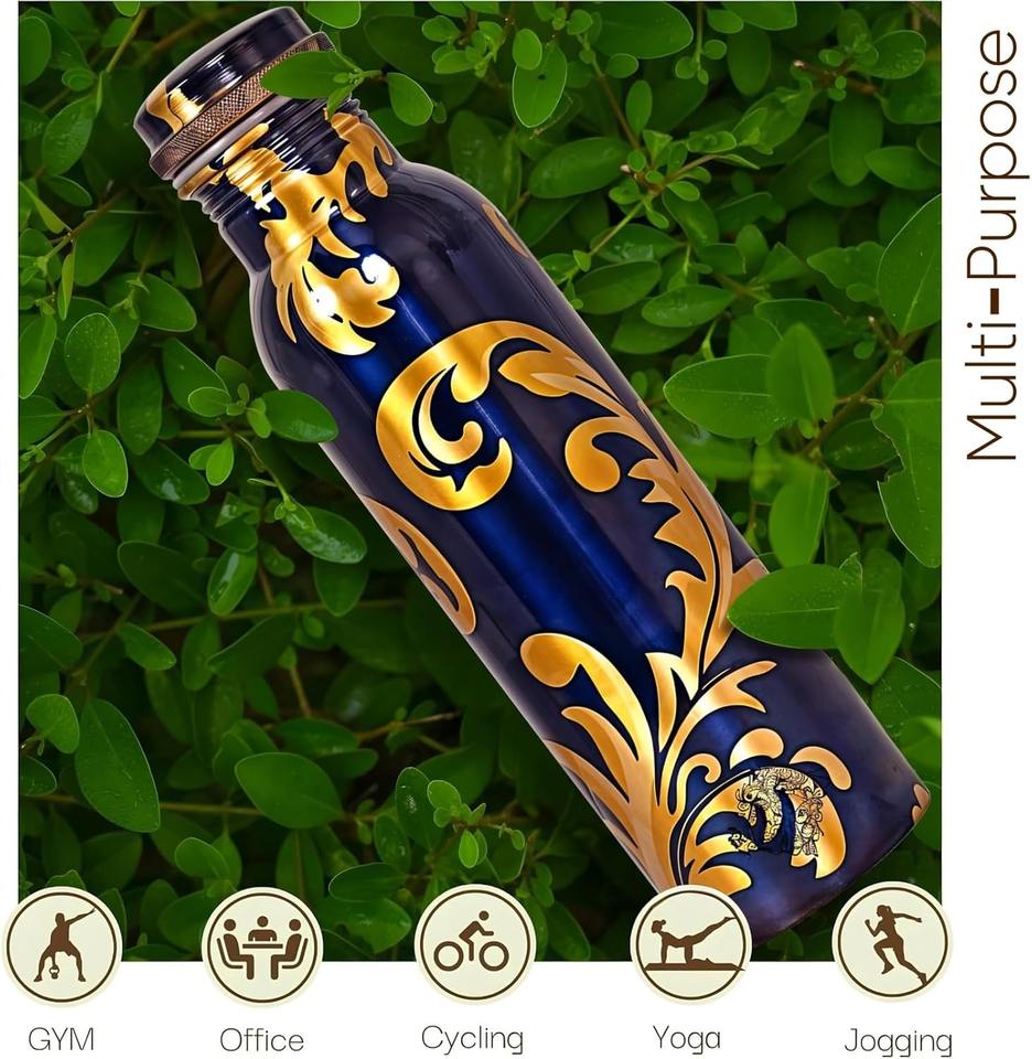 ขวดน้ำทองแดงแท้ทำมือเพื่อสุขภาพแบบอายุรเวท ป้องกันการรั่วซึม เป็นมิตรกับสิ่งแวดล้อม ใช้ซ้ำได้ เหมาะสำหรับใช้ที่บ้าน ท่องเที่ยว และออกกำลังกาย