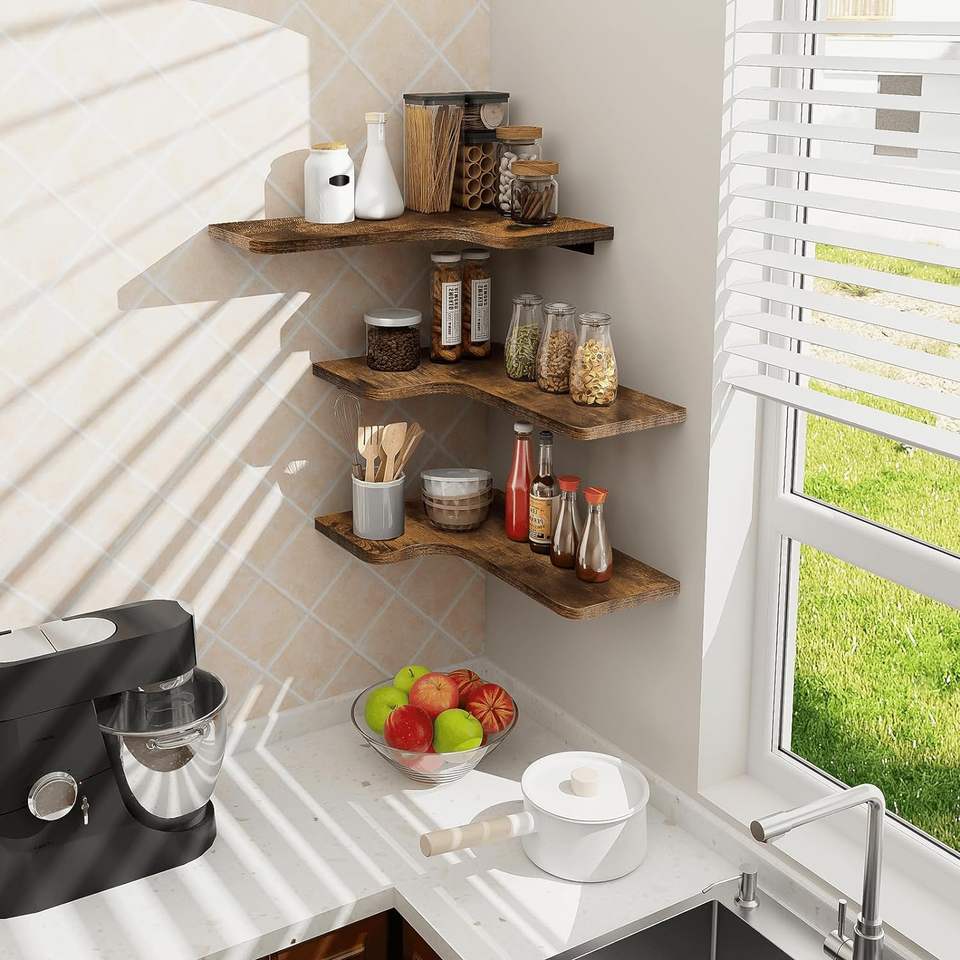 ชั้นวางมุมลอยคุณภาพสูงพร้อมรูสายไฟ-เพิ่มพื้นที่และการตกแต่งให้สูงขึ้น