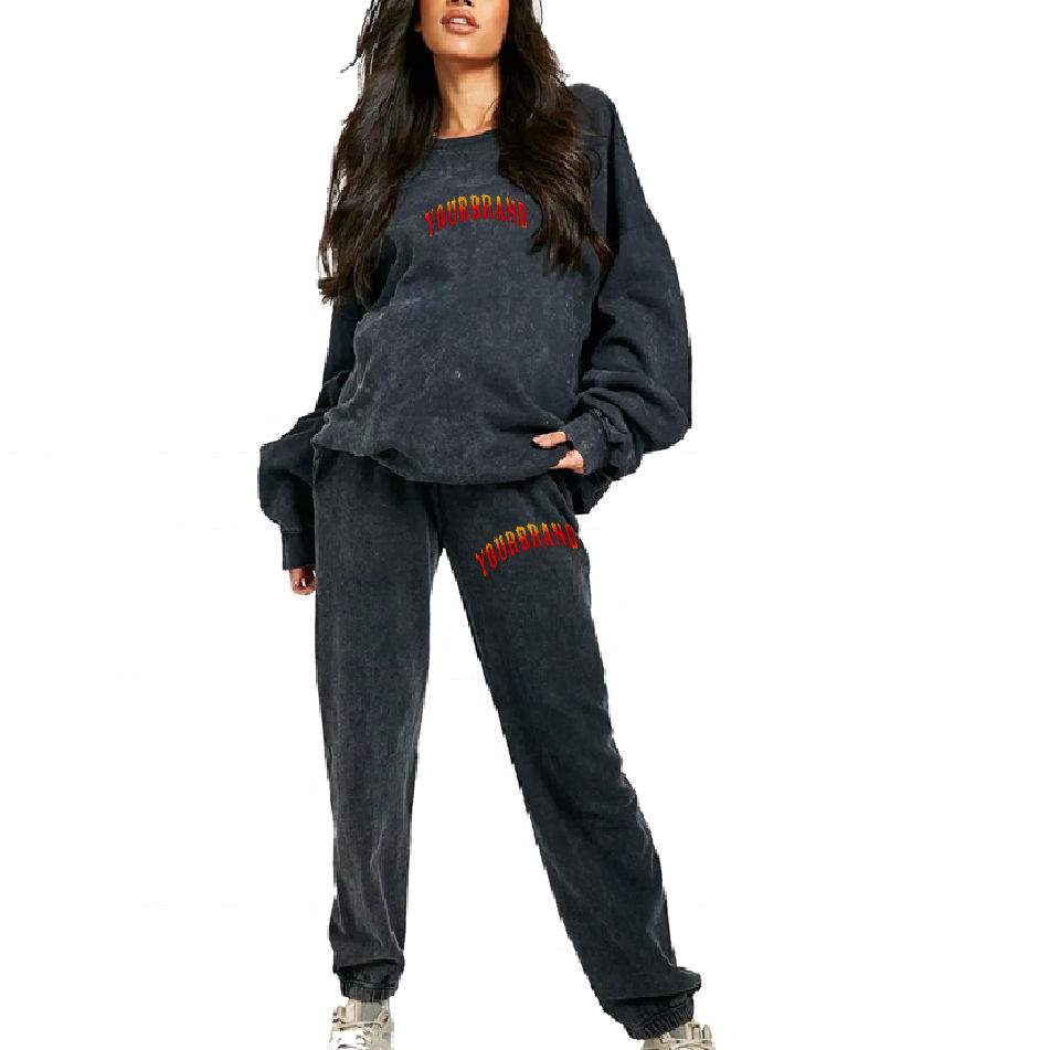 ชุดเสื้อฮู้ดผ้าฝ้าย2ชิ้นสำหรับผู้หญิงชุดเสื้อผ้าซับเหงื่อเสื้อสวมหัวทรงหลวมแบบกำหนดเองได้สำหรับฤดูใบไม้ร่วง