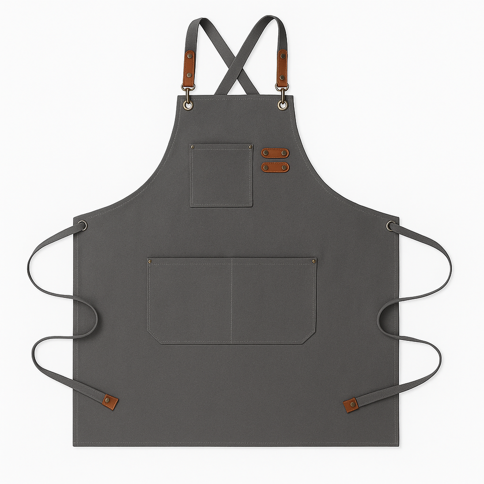 ผ้ากันเปื้อนผ้าฝ้ายคุณภาพสูง พิมพ์โลโก้ได้ สำหรับเชฟ บาริสต้า ผ้าแคนวาส กันน้ำ ไม่มีแขน ดีไซน์ทันสมัย มีกระเป๋า