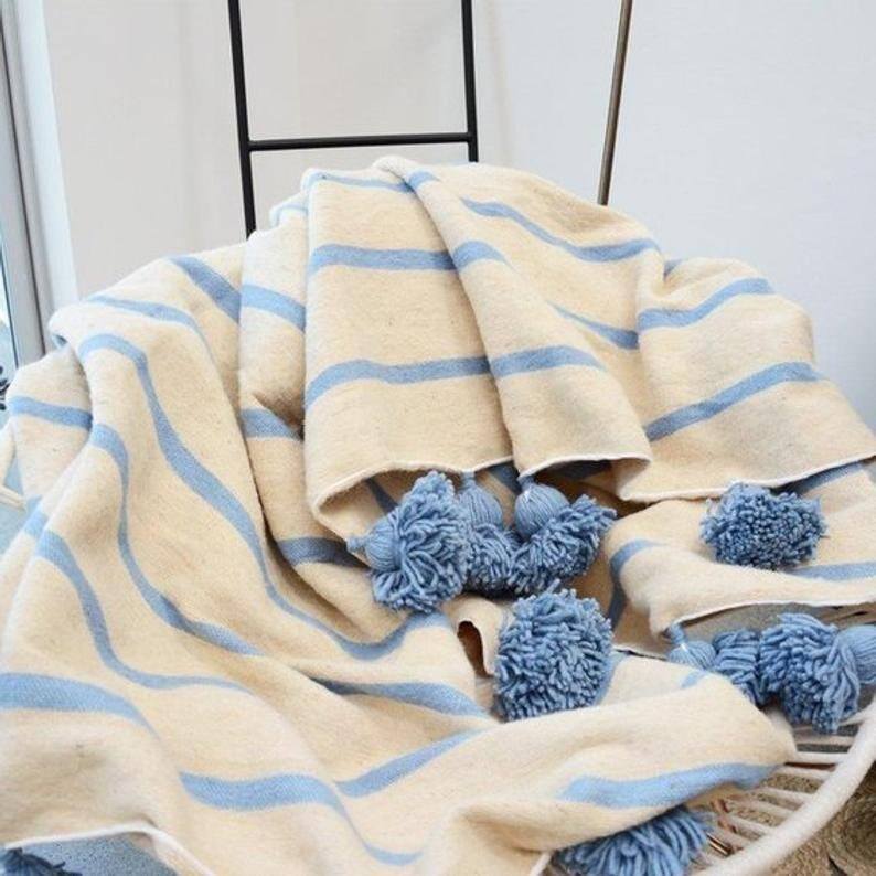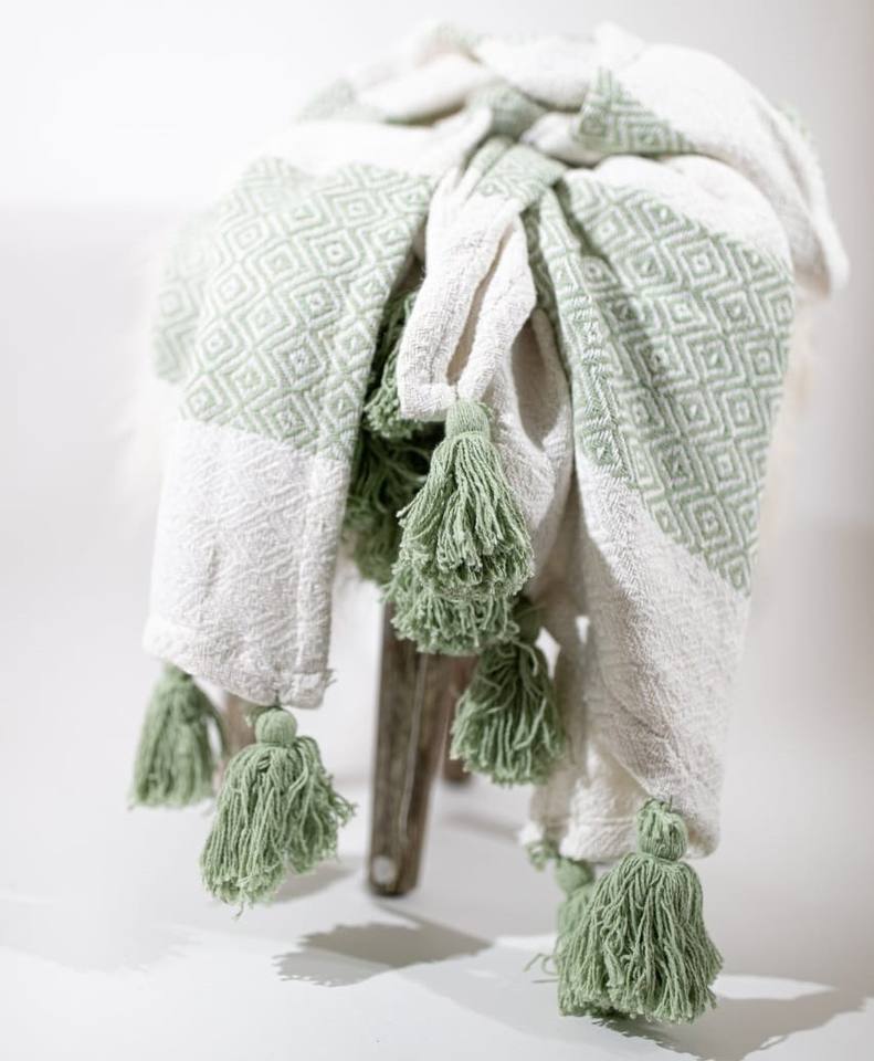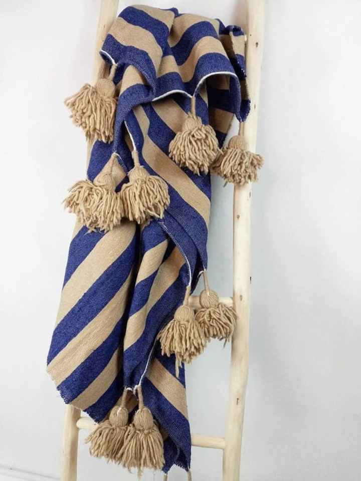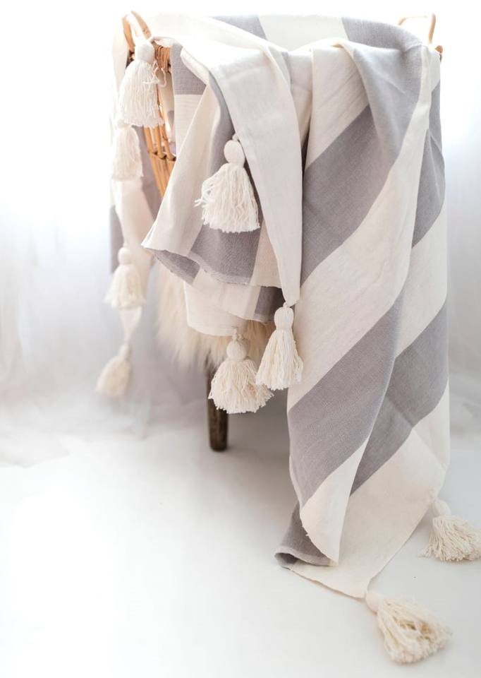 ผ้าห่มลายทางพร้อมพู่ตกแต่ง
