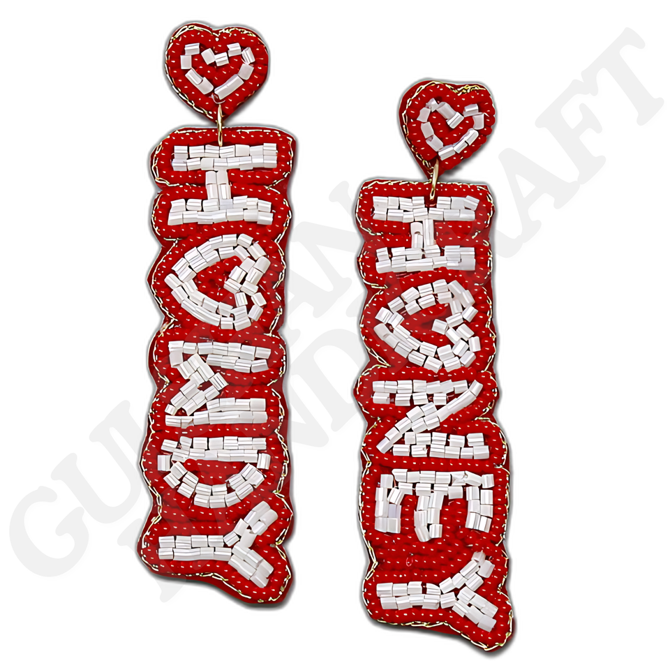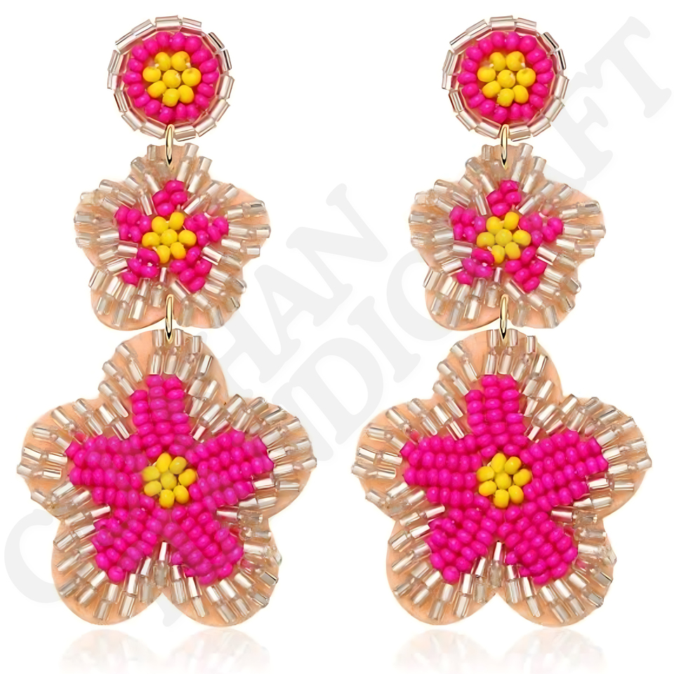 Keywords:Handcrafted earrings Gold and white embroidered jewelry
