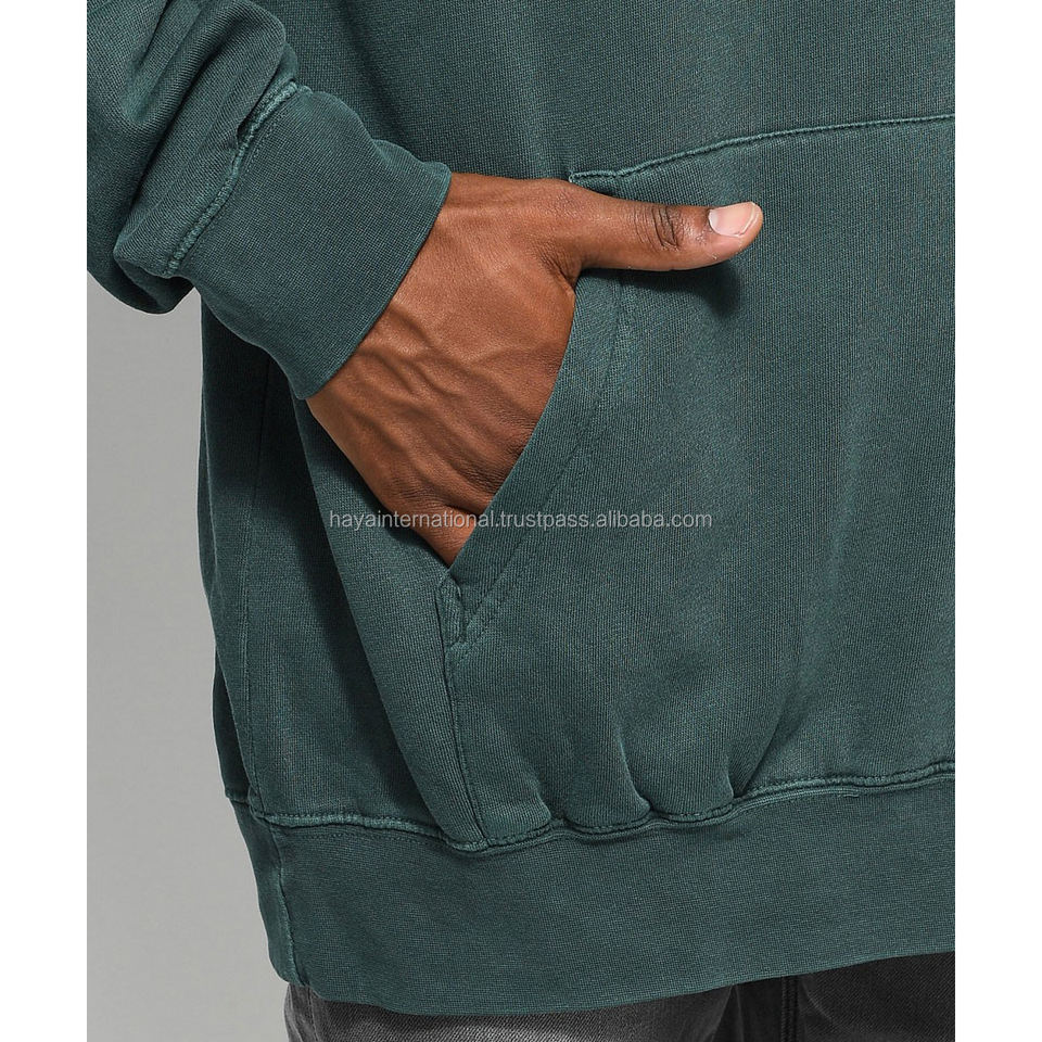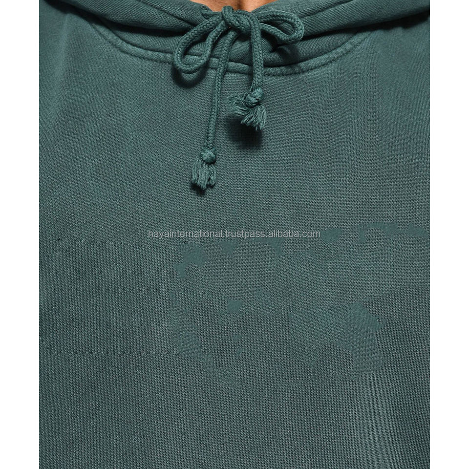 เสื้อฮู้ดสวมหัวผ้าฟลีซผ้าฝ้ายมีกระเป๋าเทคนิคการปักลายดิจิตอลสีเขียวสำหรับฤดูร้อน