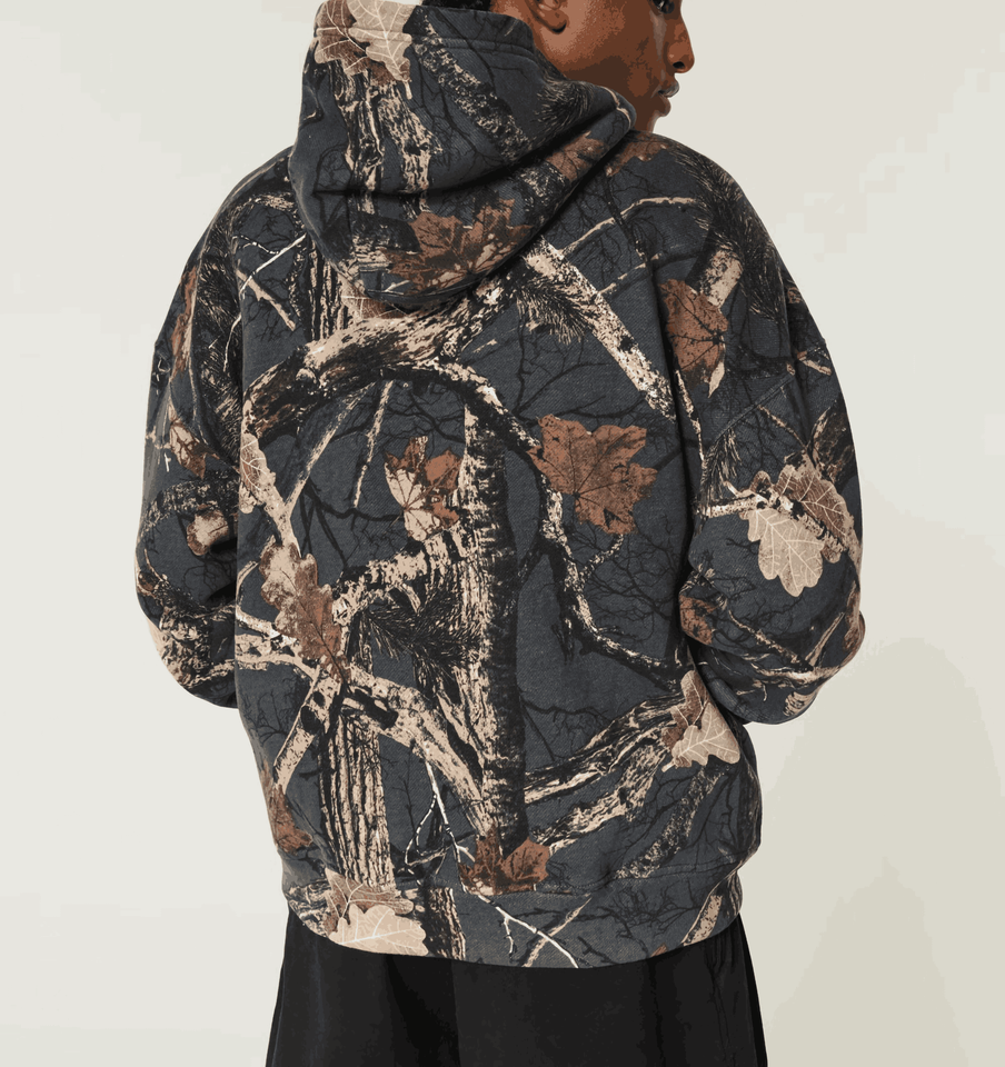เสื้อมีฮู้ดผ้าฝ้ายขนแกะแท้ลายพรางต้นไม้จริงป่าป่าป่าปรับแต่งได้