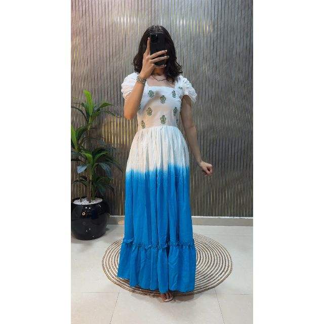 ชุดเดรสผ้าชีฟองคอตตอนคุณภาพสูงสำหรับผู้หญิง ปักลายมุกบนผ้าเนื้อนุ่ม สไตล์ชุดชาติพันธุ์ที่ทันสมัย เหมาะสำหรับงานพิธีการ