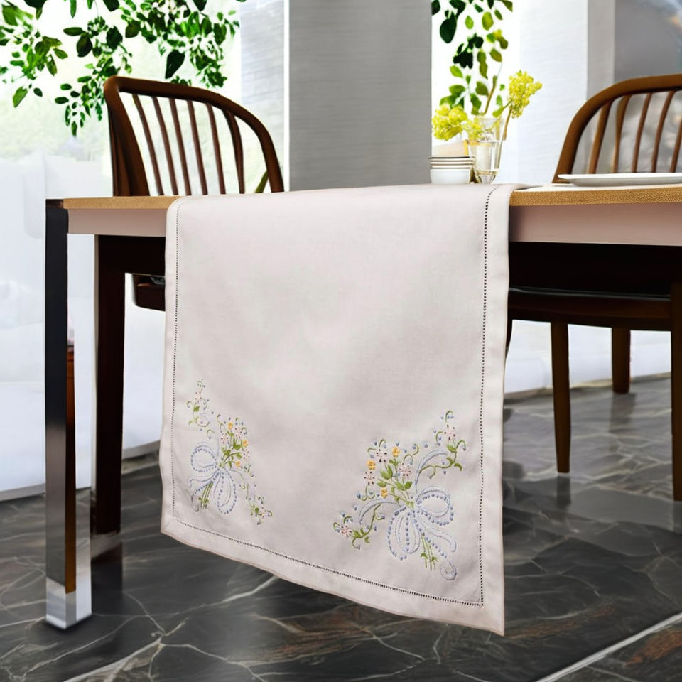 ผ้าปูโต๊ะแบบเย็บริมด้วยผ้าฝ้ายคุณภาพสูงแบบสั่งทำได้ปักลายดอกไม้เล็กๆสำหรับบ้านโรงแรมร้านอาหารโต๊ะ