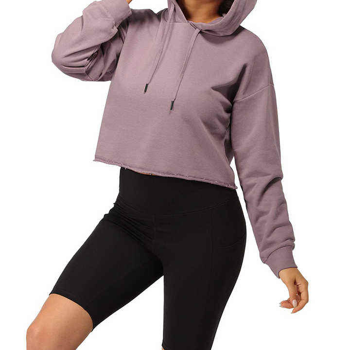 เสื้อครอปแบบสวมหัวแขนยาวผ้าฝ้ายคุณภาพสูงสำหรับผู้หญิงเสื้อครอปแบบมีฮู้ดกำหนดโลโก้เอง