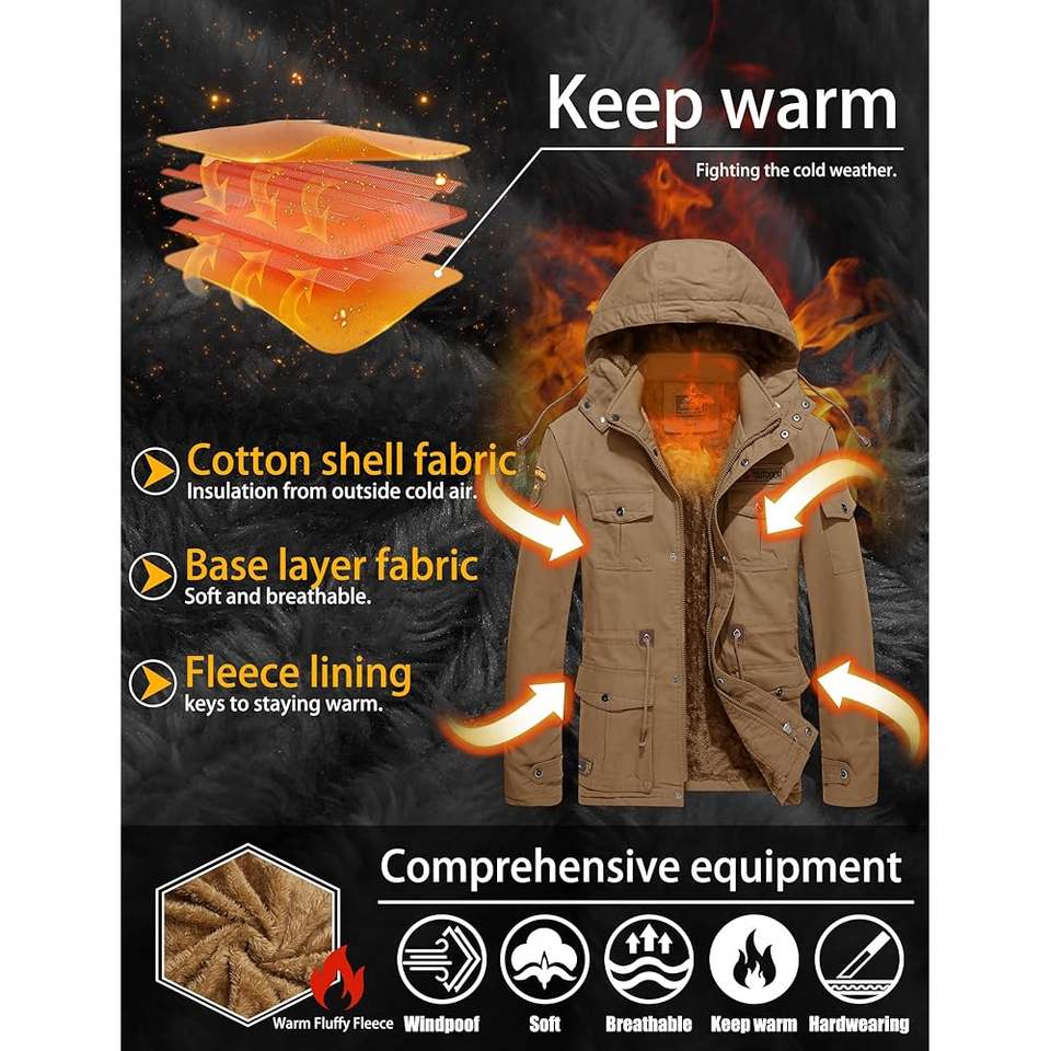 แจ็กเก็ตนักบินผ้าฟลีซให้ความอบอุ่นสำหรับฤดูหนาวเสื้อกันลมผ้าแคนวาสไซส์ใหญ่พิเศษ